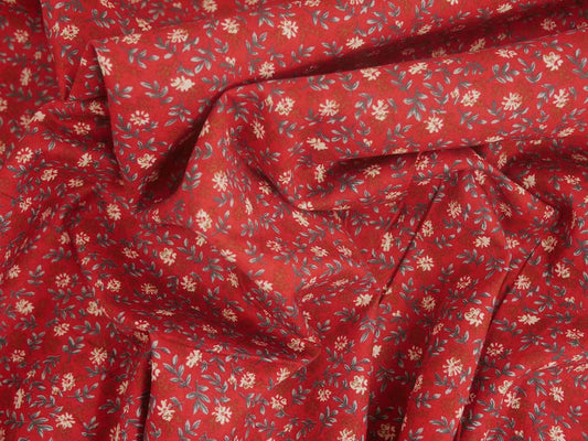Printed Cotton Poplin - Burgundy Red Ditsy Daisy