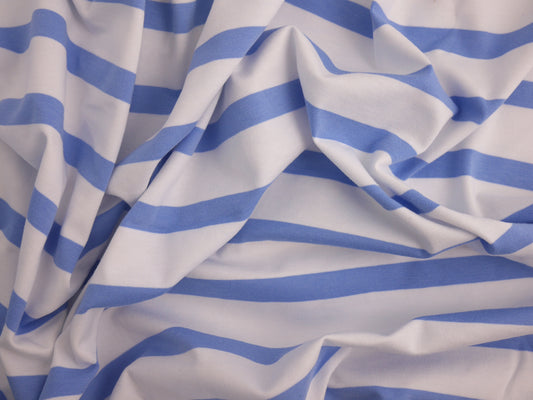 ORGANIC Striped Cotton Jersey - Blue and White 1.80 Metre Remnant