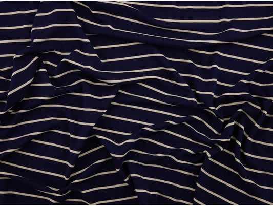 Single Jersey Large Stripe Fabric - Navy/Cream
