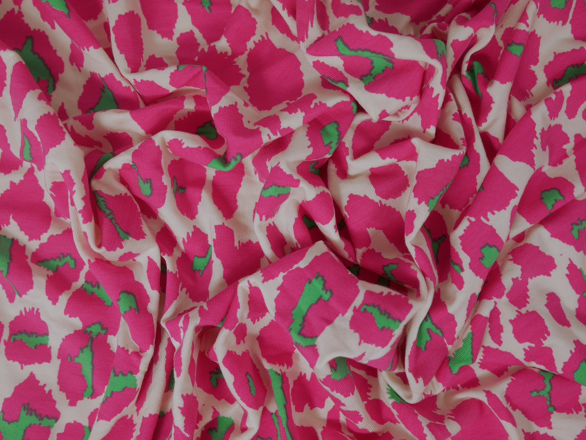 Micro Modal Single Jersey - Leopard Print Pink and Green 1 Metre Remnant