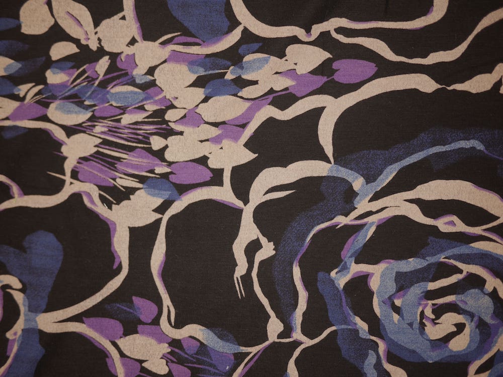 Printed Viscose Jersey Fabric Blue & Purple Watercolour Roses