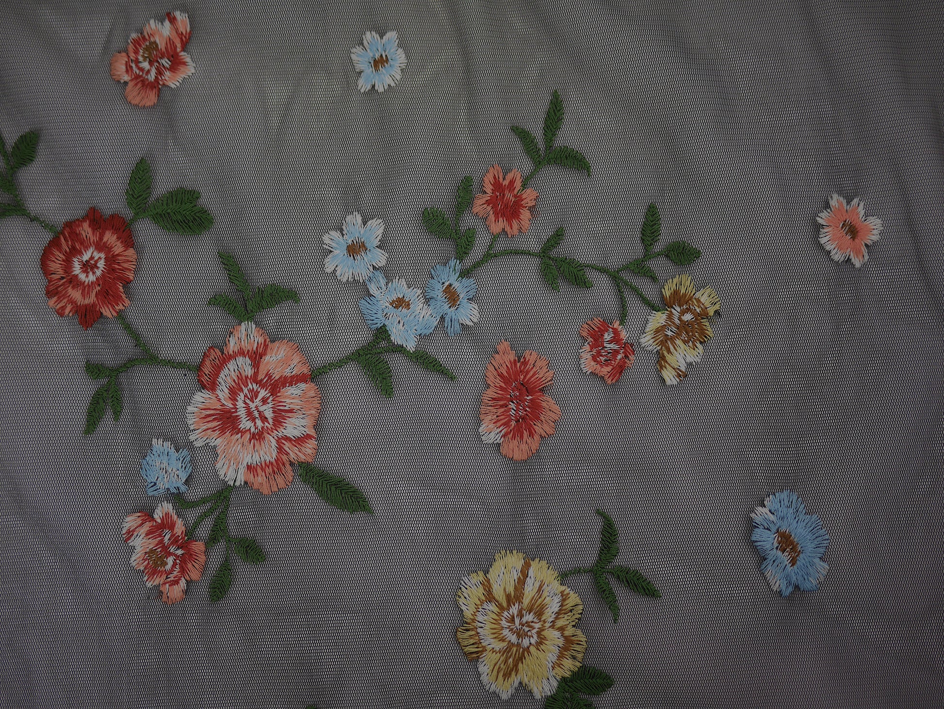 Sheer Polyester with Embroidered Flowers