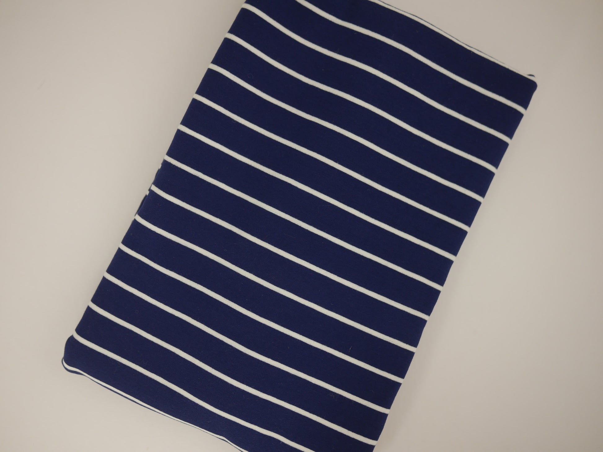 Single Jersey Stripe Fabric - Navy/White 1 Metre Remnant